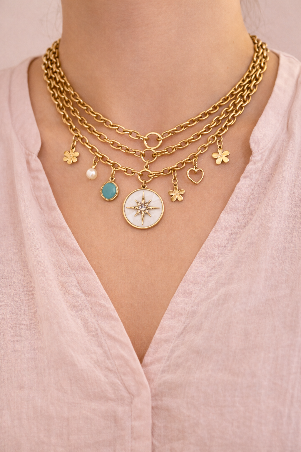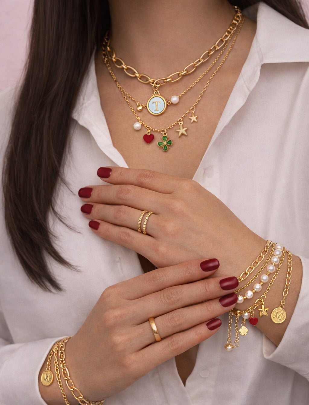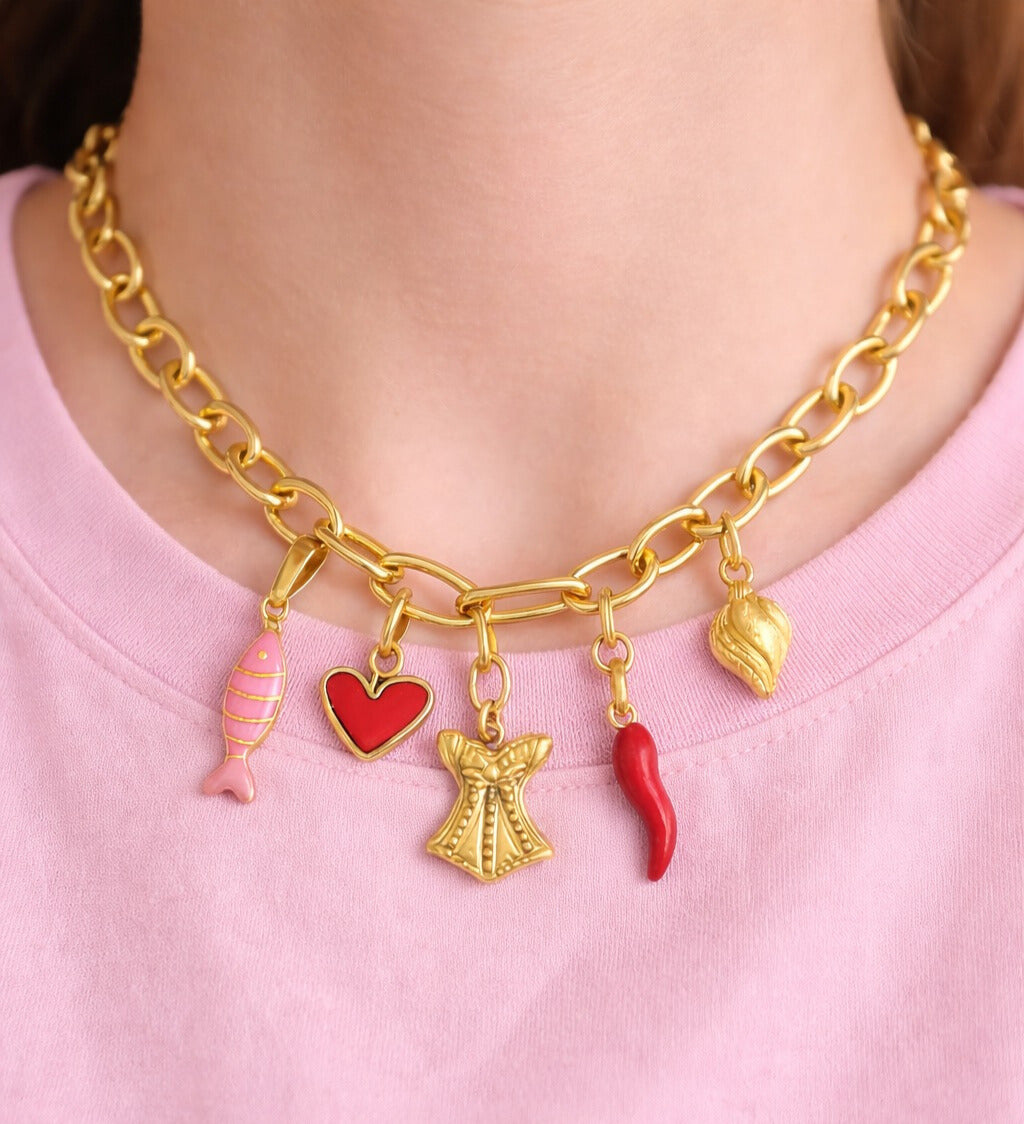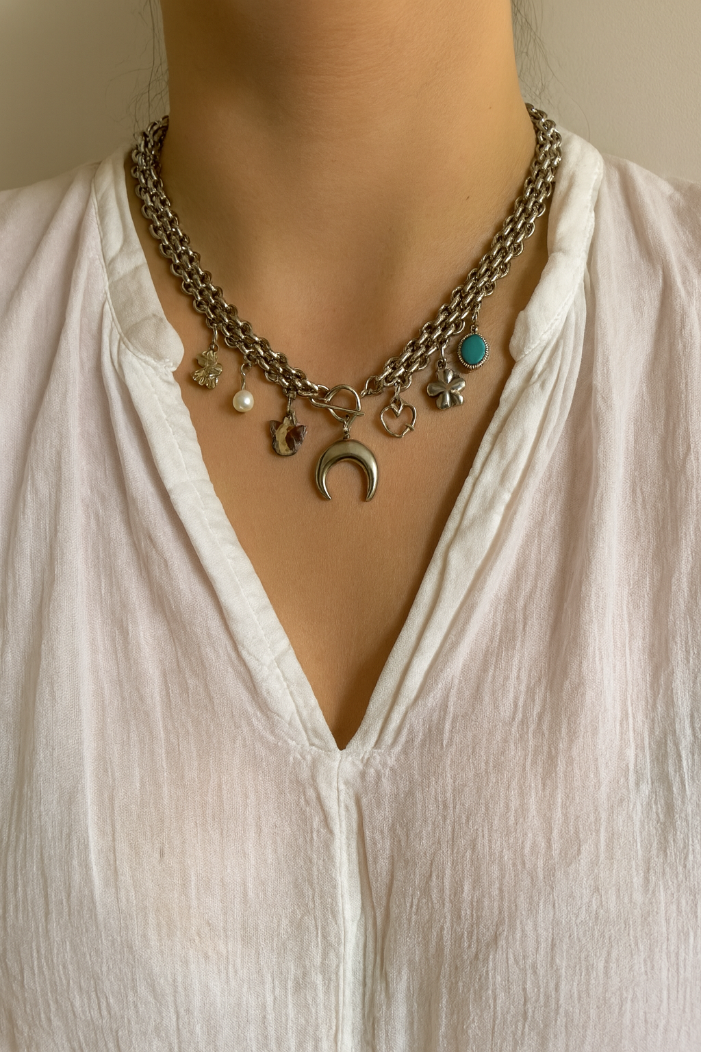 Our Charm Bar lets you design a personalized charm necklace or charm bracelet using our signature stainless-steel chains and beautiful, high-quality charms.